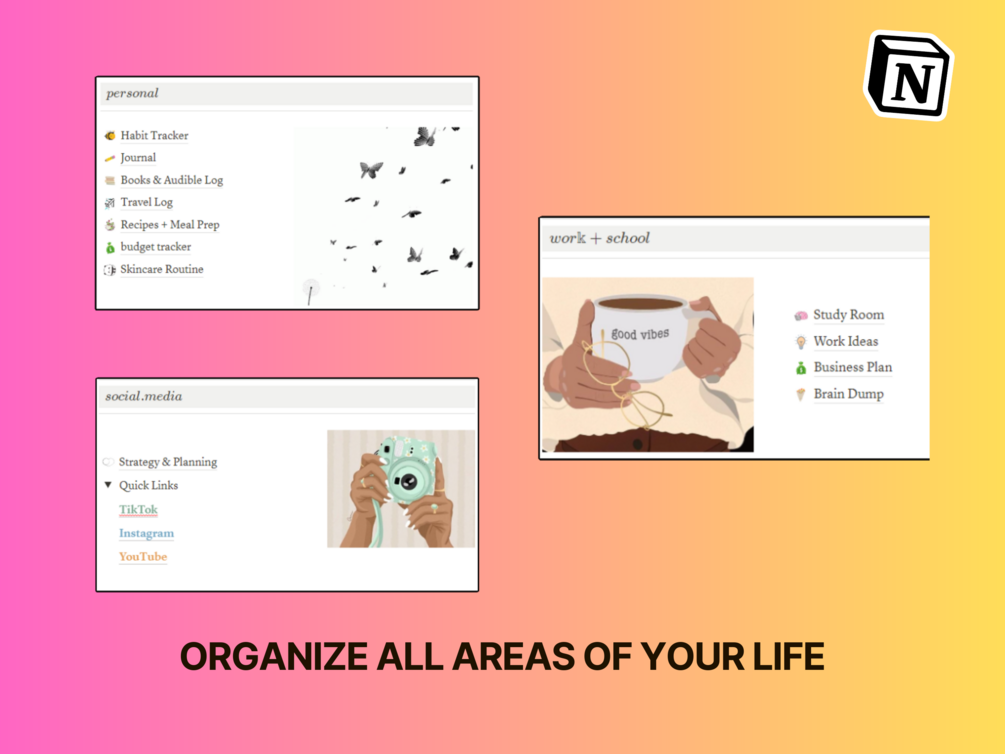 Crafted exclusively for women like you, this aesthetic notion template serves as your personal hub to conquer life's challenges. With its comprehensive features, you'll experience a complete transformation in how you organize your life, nurture your finances, and pursue your dreams.